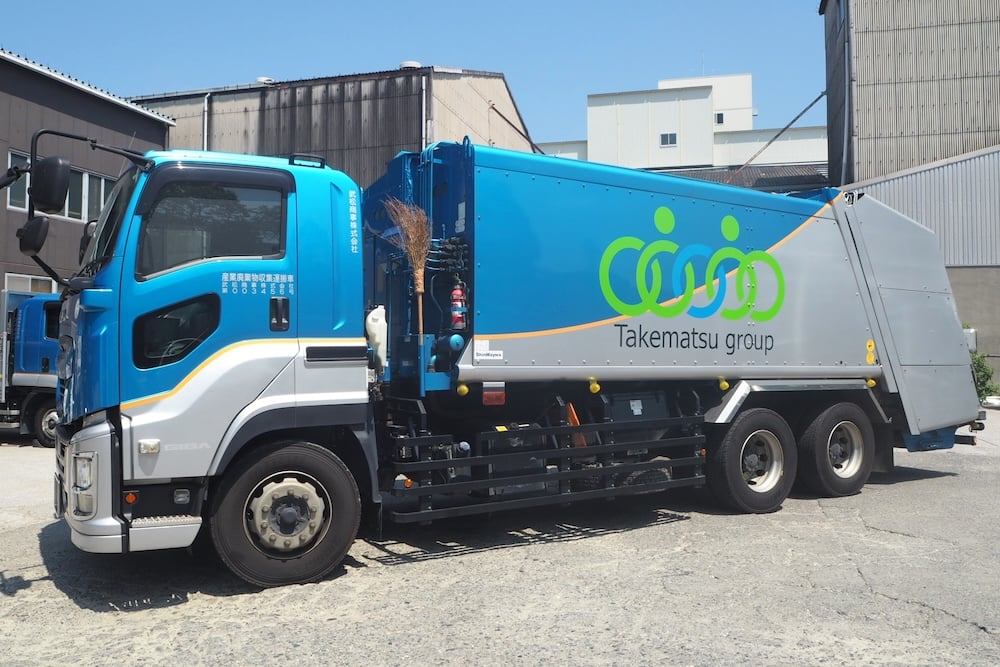 武松商事のロゴがあしらわれた大型収集運搬車両