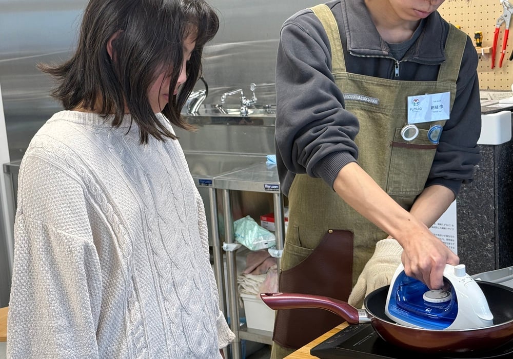 アイロンを使う工程で、どれだけの熱を加えるかによりペレットの粒感を残すかどうかを選べるのも、このペレットバッジづくりの魅力です。参加者は、アイロンの熱でペレットが溶けていく様子を、興味深そうに観察していました。